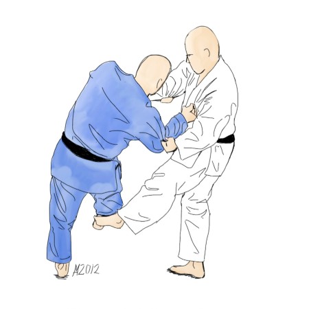 Consiste en desequilibrar al oponente hacia atrás y barrer su pierna de apoyo desde el exterior para derribarlo.