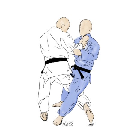 Control lateral fundamental donde tori inmoviliza a uke sujetando su cabeza y brazo, manteniendo el peso proyectado desde el costado y estabilizando con las piernas abiertas para impedir el giro.